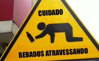Quando o nego véio foi cruzá a rua veio um fuque muito que devagar e o tongo do bêbado resolve pará de cróque na frente do carro, que freiô meio decumforça. Isso pra não dá uma borduada no animár de teta.